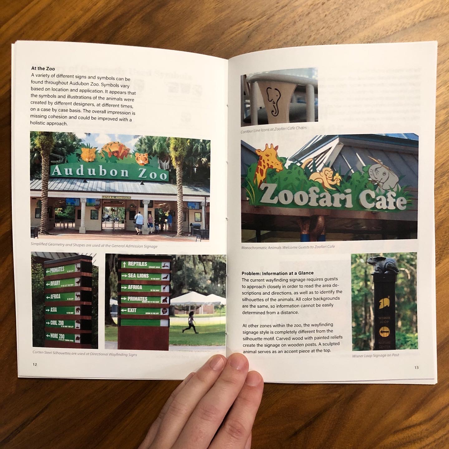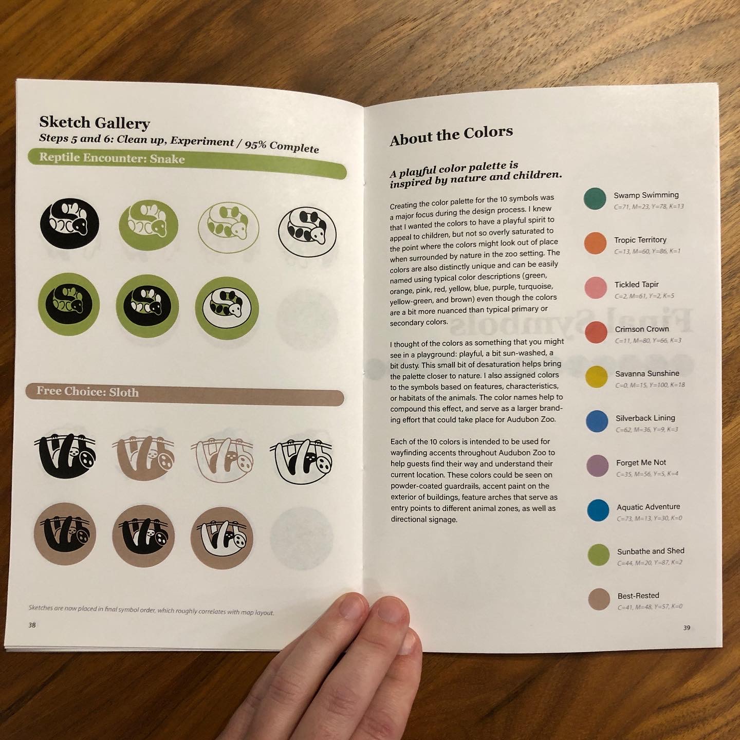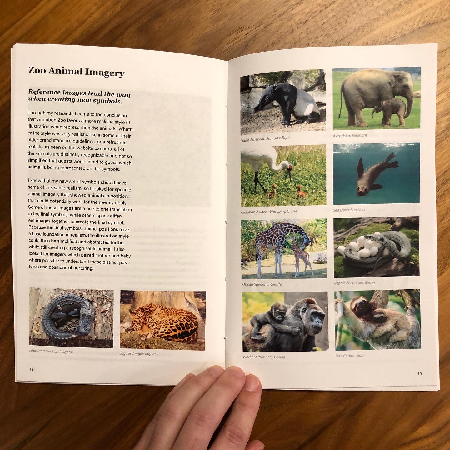A 55 page booklet was created to outline the entire project process from start to finish. This helped to ensure project goals were kept in mind at every stage of development and shows the entire design evolution of the Audubon Zoo symbols.